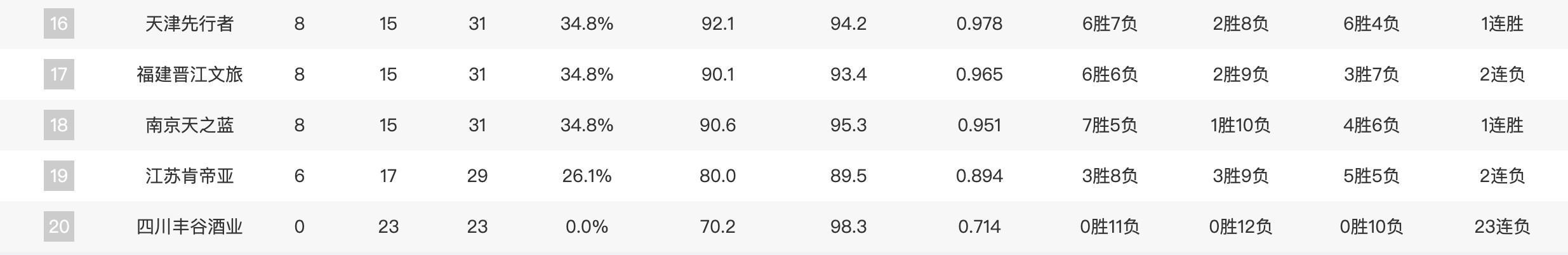 19.江苏肯帝亚(6胜17负)